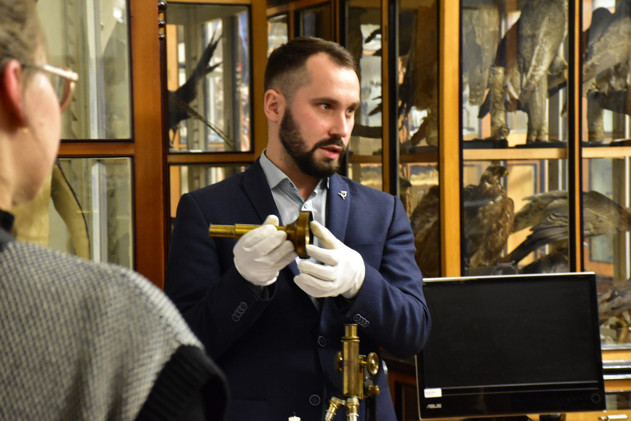 2 декабря в Зоологическом музее состоялась встреча Зооклуба ТГУ, на которой заведующий Зоологическим музеем и кафедрой зоологии позвоночных и экологии Ярцев Вадим Вадимович и заведующий отделом учебной и просветительской работы Зоологического музея Коломиец Зухра Рашитовна представили доклад «Микроскопы − помощники зоолога».
